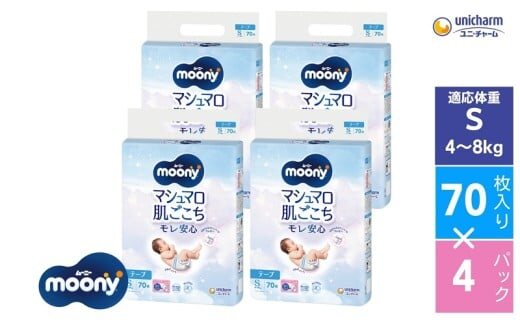 ムーニー マシュマロ肌ごこちモレ安心 Sサイズ 70枚×4袋セット 4~8kg ユニ・チャーム おむつ 紙おむつ