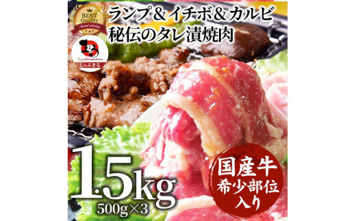 ランプ&イチボ&カルビ 希少部位 MIX焼肉1.5kg(500g×3) 秘伝のタレ漬け