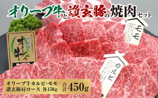 オリーブ牛 讃玄豚 コラボ焼肉セット450g 液体凍結 黒毛和牛 プレミアム黒毛和牛 讃岐牛 オリーブ牛カルビ オリーブ牛モモ 讃玄豚肩ロース 各150g 冷凍 急速冷凍