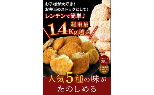 5種類のフレーバーがそれぞれ1袋ずつ入っており、忙しい日常でも電子レンジで簡単に温めるだけで、美味しいコロッケを楽しむことができます。