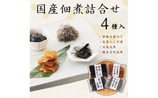 国産佃煮詰合せ(4袋)(伊勢志摩のり・生姜つくだ煮・日高昆布・絹糸汐吹昆布)