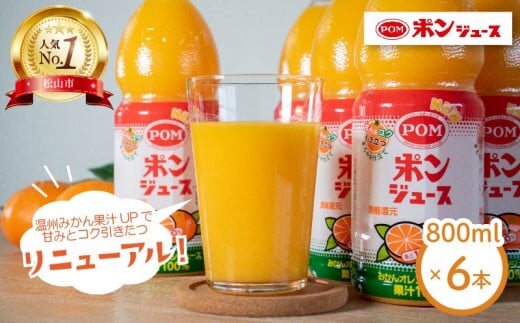 ポンジュース 4.8L ( 800ml × 6本 ) みかん ジュース ぽんじゅーす みかんジュース みかんじゅーす オレンジジュース おれんじじゅーす 果汁飲料 ペットボトル オレンジ みかん 果汁 100% 飲料 人気 おすすめ 愛媛県 松山市