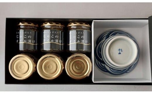 <ギフト用>【化粧箱入】あんちょび入りじゃこのオイル漬け〈6本〉・お茶碗セット おすすめ 人気 ギフト セット 愛媛県 松山市 お酒のお供 ごはんのお供