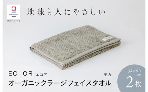 (今治タオルブランド認定品)ECOR オーガニックラージフェイスタオル 2枚セット モカ ふっくら ヘリボーン 水布人舎 [I001300MOC]