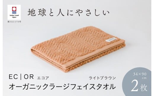 (今治タオルブランド認定品)ECOR オーガニックラージフェイスタオル 2枚セット ライトブラウン ふっくら ヘリボーン 水布人舎 [I001300LBW]