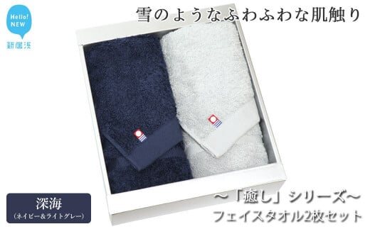 【今治タオル】 フェイスタオル2枚セット 「癒し」シリーズ(深海:ネイビー&ライトグレー) 【Hello!NEW タオル】
