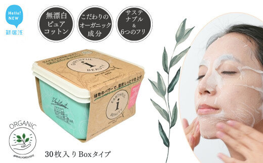 サステナブルなフェイスマスク 「アースフルビューティ」 ヴァーベナの香り (BOXタイプ) 30枚入り ×1箱 植物のパワーで濃密しっとり仕上げ 6つのフリー処方 無漂白ピュアコットンシート こだわりの美容・オーガニック成分【SPC】