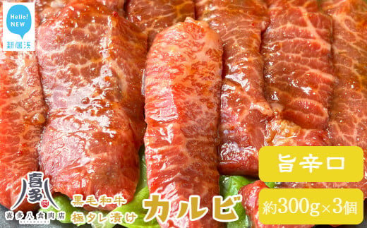 黒毛和牛 オリジナル極タレ漬け カルビ 旨辛口 約300g×3パック 合計約900g 焼肉用 牛肉 お肉博士厳選 冷凍 喜多八食肉店