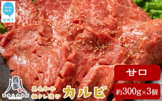 黒毛和牛 オリジナル極タレ漬け カルビ 甘口 約300g×3パック 小分け 合計約900g 焼肉用 牛肉 お肉博士厳選 冷凍 喜多八食肉店