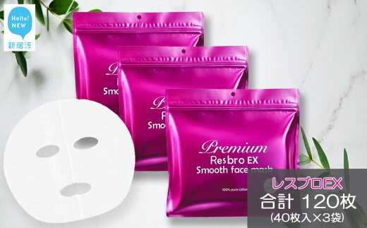 美しく歳を重ねる 【合計120回分】 レスブロEXスムースフェイスマスク 40枚入り×3袋 サロン級美容液が1枚に12g スキンケア フェイスパック シートマスク 100%ピュアコットン 日用品 国産 無香料 無着色 無鉱物油 【SPC】