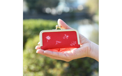 伊予小紋いちよう がま口小物入れ ( 霊峰石鎚_紅唐色 )