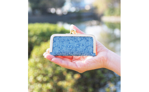伊予小紋いちよう がま口小物入れ ( 一富士二鷹三茄子 )