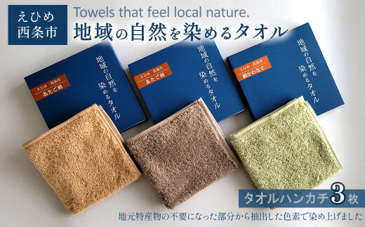 タオル ハンカチ 「地域の自然を染めるタオル」 タオルハンカチ 3枚セット(3色) 天然加工 草木染 西条市 河上工芸所