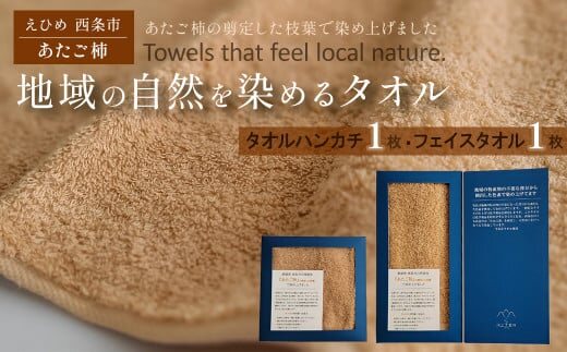 タオル 「地域の自然を染めるタオル」 フェイスタオル・タオルハンカチ 各1枚セット(ライトブラウン/あたご柿) 天然加工 草木染 西条市 河上工芸所