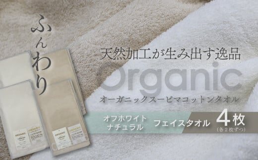 オーガニックスーピマコットンタオルのフェイスタオルサイズ4枚セットです。超長綿で独自の高貴な艶としなやかさがあり、やわらかくて丈夫な最上級のコットンを使用。