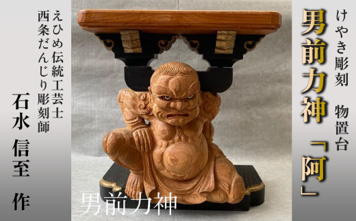 けやき彫刻 男前力神の台 【阿吽像】- 阿(あ) - 物置台 彫刻 えひめ伝統工芸士 石水彫刻所 だんじり彫刻士