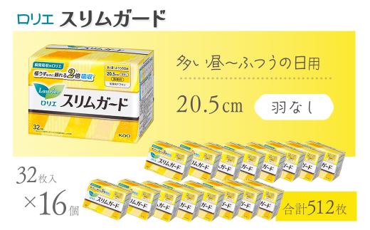 ロリエ スリムガード 多い昼~ふつうの日用 羽なし 32枚入り×16個セット 【合計512枚】 | 愛媛県西条市 生理用品 ナプキン 昼用 ロリエ スリムガード 無香料 生理用ナプキン サニタリー 備蓄 備蓄用 日用品 送料無料