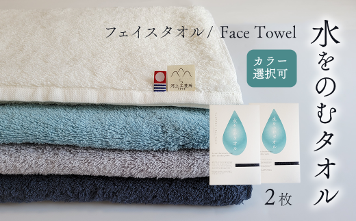 今治タオルブランド認定品 タオル 水をのむタオル フェイスタオル 2枚 【カラー:お好きな組み合わせ 選択可能】 ホワイト/グレー/ネイビー/ブルー
