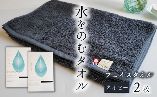 今治タオルブランド認定品 タオル 水をのむタオル フェイスタオル 2枚 【カラー:ネイビー】