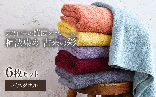 今治タオルブランド認定品 タオル 天然由来の抗菌タオル 「柿渋染め 古来の彩(いろ)」 バスタオル 6枚セット(6色セット) 深川鼠/青鈍/小豆色/江戸紫/苅安色/茜 各色1枚ずつ計6枚セット | タオル バスタオル 今治タオルブランド 日用品 抗菌 無地 シンプル 愛媛県