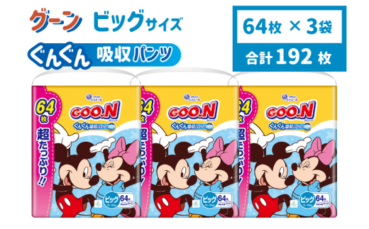 グーン ぐんぐん吸収パンツ BIGサイズ超たっぷり 64枚(パンツタイプ) 日用品 消耗品 防災 備蓄品 【四国中央市 日本一 紙のまち】