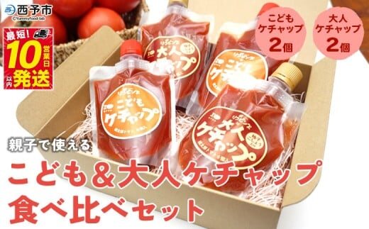 <親子で使える こども&大人ケチャップ 食べ比べセット 合計4個(各種2個)> とまと 野菜 完熟 調味料 子供 パスタソース 辛口 詰め合わせ ギフト 食べて応援 国産 特産品 遊子川ザ・リコピンズ 愛媛県 西予市【常温】『最短10営業日以内に順次発送予定』