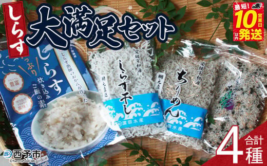 <しらす大満足セット 合計4種>炊き込み 西予市産 ちりめん しらす干し 食べ比べ 健康 カルシウム 詰め合わせ チリメン シラス 魚介 海産物 海鮮 家庭用 贈答用 小分け 国産 特産品 産地直送 濱田水産 愛媛県 西予市【冷凍】