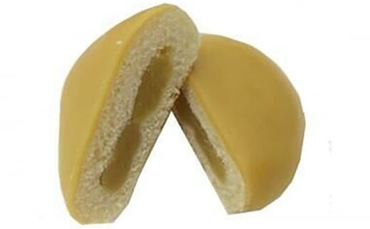 白あんの羊羹ぱんの中には柚子ピールが入っています。こしあんの丸いあんパンの上に羊羹をコーティングした甘い羊羹パン。