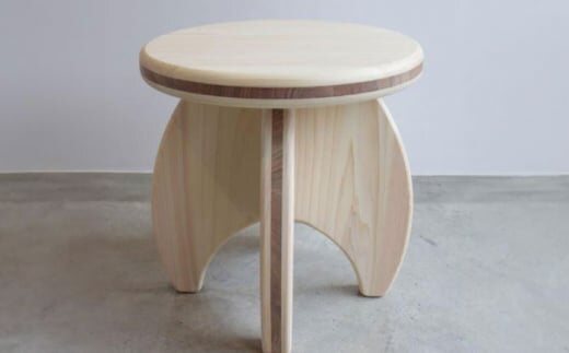 高知県産ひのきでできた、脚のかたちが愛らしい、丸い座面のスツールの腰かけタイプです。