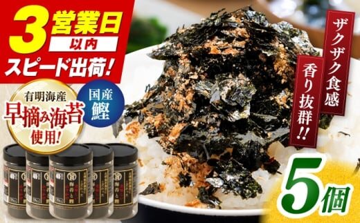 【3営業日以内出荷!】美味しい海苔と鰹のふりかけ 5個 (1個あたり約50g入) / 国産原料 のり 海苔 味のり 味付き 味海苔 nori 鰹 かつお カツオ 朝食 ごはん ふりかけ おつまみ かね岩海苔 おすすめ 人気 送料無料 有明海産 有明海 高知海苔 高知 四国 高知市 高知県 すぐ届く スピード発送 【株式会社かね岩海苔】 [ATAN070]