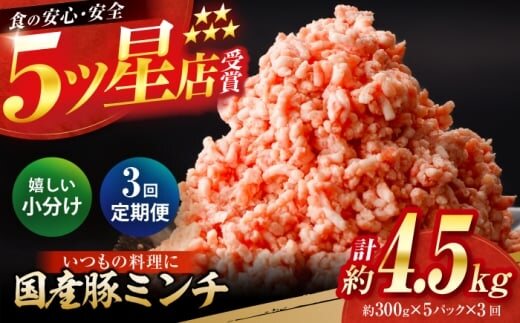 【3回定期便】国産 豚ミンチ 約300g×5 総計約4.5kg / 嬉しい小分け 挽きたて 豚肉【(有)山重食肉】 [ATAP175]