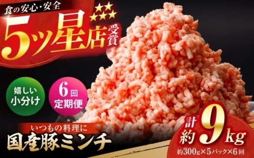 【6回定期便】国産 豚ミンチ 約300g×5 総計約9kg / 嬉しい小分け 挽きたて 豚肉【(有)山重食肉】 [ATAP176]