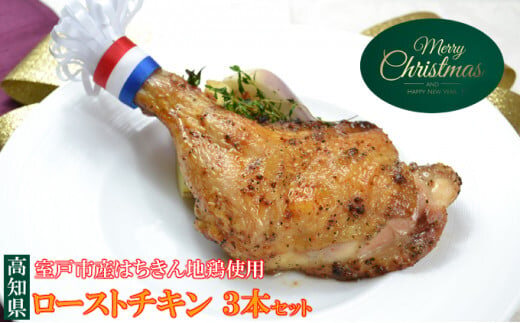 【クリスマス先行予約】クリスマス限定 はちきん地鶏 ローストチキン 3本 | チキン 骨付きチキン 骨付きレッグ Xmas 限定 ごちそう 予約受付中 簡単調理 パーティ 家族用 カップル用 ギフト 冷凍 送料無料 高知県 室戸市