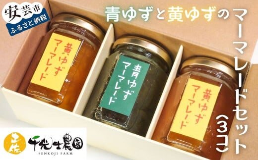 「青ゆずマーマレード(1個)」と「黄ゆずマーマレード(2個)」の3個セット。