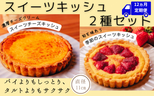 スイーツキッシュ 2種セット 12ヵ月定期便 パイ タルト 新食感 高知県産 果物 季節 チーズ バスクチーズケーキ クリーミー 直径11㎝ スイーツチーズキッシュ 1個×3回 季節のスイーツキッシュ 1個×3回 ゆず 金柑 くるみ チョコ 土佐文旦 苺 小夏 沢渡茶 あずき ブルーベリー ラズベリー 桃 スモモ いちじく アップル 栗 スイートポテト 安芸市 高知県