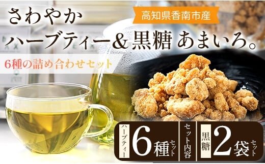 さわやかハーブティー6種×1 & 高知県香南市産黒糖「あまいろ。」×2 - お茶 飲み物 ティーバッグ 茶葉 ミント レモングラス ローズマリー 砂糖 サトウキビ お茶請け 調味料 GreenBase 高知県 香南市 gr-0127
