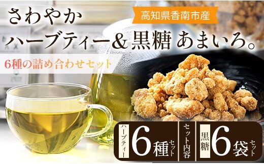 さわやかハーブティー6種×1 & 高知県香南市産黒糖「あまいろ。」×6 - お茶 飲み物 ティーバッグ 茶葉 ミント レモングラス ローズマリー 砂糖 サトウキビ お茶請け 調味料 GreenBase 高知県 香南市 gr-0128