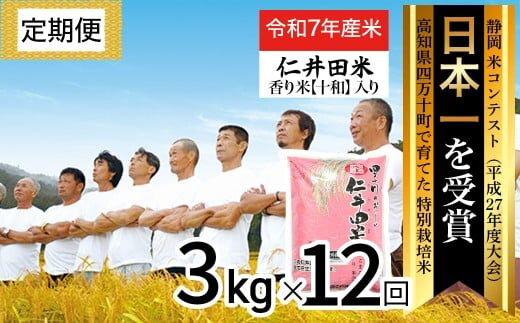 【令和7年産米】【初回11月配送】 四万十育ちの美味しい仁井田米(香り米入り)定期便【3kg×12回】 新米 新米予約 仁井田米 米 こめ コメ お米 おこめ ブランド米 白米 /Rbmu-E05