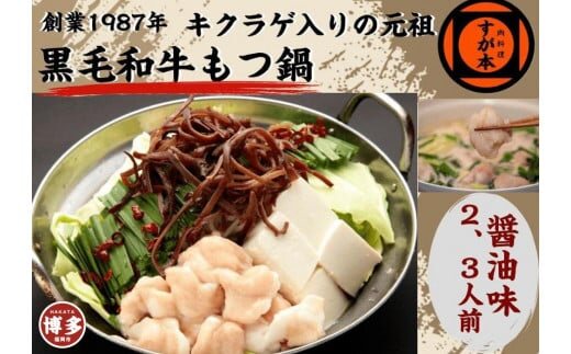 博多の名物!!創業1987年老舗和牛もつ鍋 醤油味 2、3人前