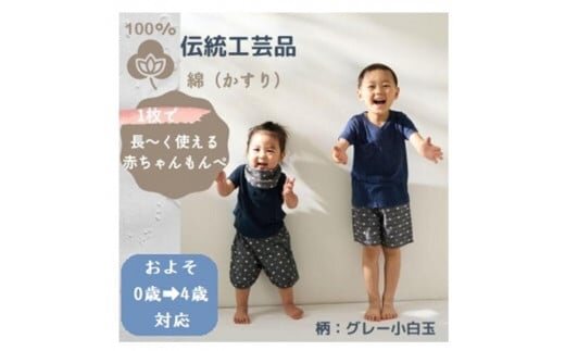 伝統工芸品の絣(かすり)を使用した3年使えるベビー&子ども用もんぺ