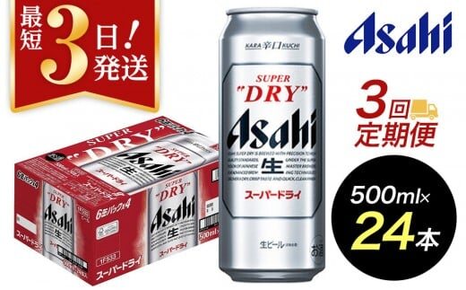 【定期便3回】【博多工場産ビール】アサヒ スーパードライ500ml 6缶パック×4 ケース入り