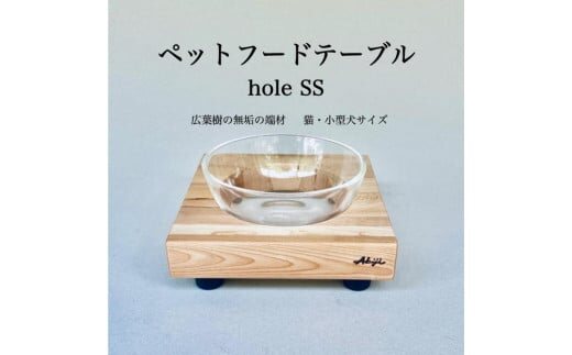 ペットフードテーブル hole SS(福岡市内製造)(ガラスボウル付き)