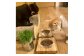 ディッシュテーブルの高さは5cmで、猫や小型犬におすすめします。ペットの体の大きさや食べる際の姿勢に合わせてお選びください。同シリーズには高さ8cmのテーブルもありますのでご検討ください。