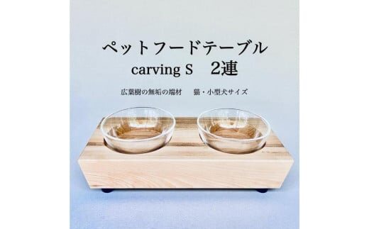ペットフードテーブル carving S 2連(福岡市内製造)(ガラスボウル付き)