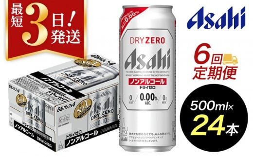 【定期便6回】【博多工場産】アサヒビール ドライゼロ500ml 6缶パック×4 ケース入り