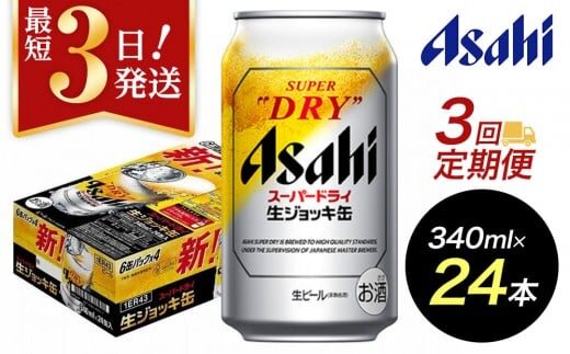 【定期便3回】【博多工場産ビール】アサヒ スーパードライ生ジョッキ缶340ml 6缶パック×4 ケース入り