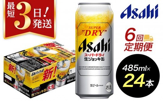 【定期便6回】【博多工場産ビール】アサヒ スーパードライ生ジョッキ缶 大生485ml 6缶パック×4 ケース入り