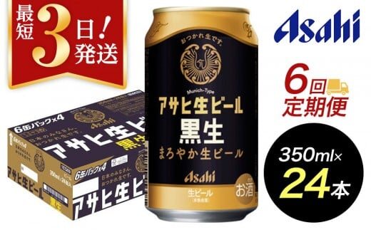 【定期便6回】【博多工場産ビール】アサヒ 生ビール黒生350ml 6缶パック×4 ケース入り
