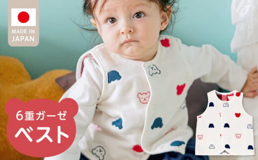 \レビューキャンペーン中/ベスト(トリコロールガーゼ)_手軽に羽織れる ベスト 1枚 くま柄 トリコロールガーゼ 綿100% 日本製 6重ガーゼ 体温調節 男の子 女の子 赤ちゃんの城 福岡県 久留米市 お取り寄せ ベビー用品 子供服 ベビー 赤ちゃん 通気性 速乾性 優しい肌触り 一年中 前開き 送料無料_Sd011