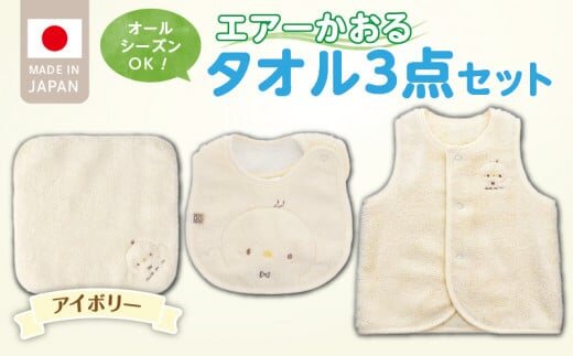 \レビューキャンペーン中/エアーかおるタオルセット アイボリー_エアーかおる タオルセット カラー 選べる ベスト スタイ ハンカチ 肌にやさしい ふんわり やわらかな肌触り 吸水性 赤ちゃんの城 ベビー用品 出産準備 ベビー 赤ちゃん 新生児 男の子 女の子 福岡県 お取り寄せ 久留米市 送料無料_Sb025